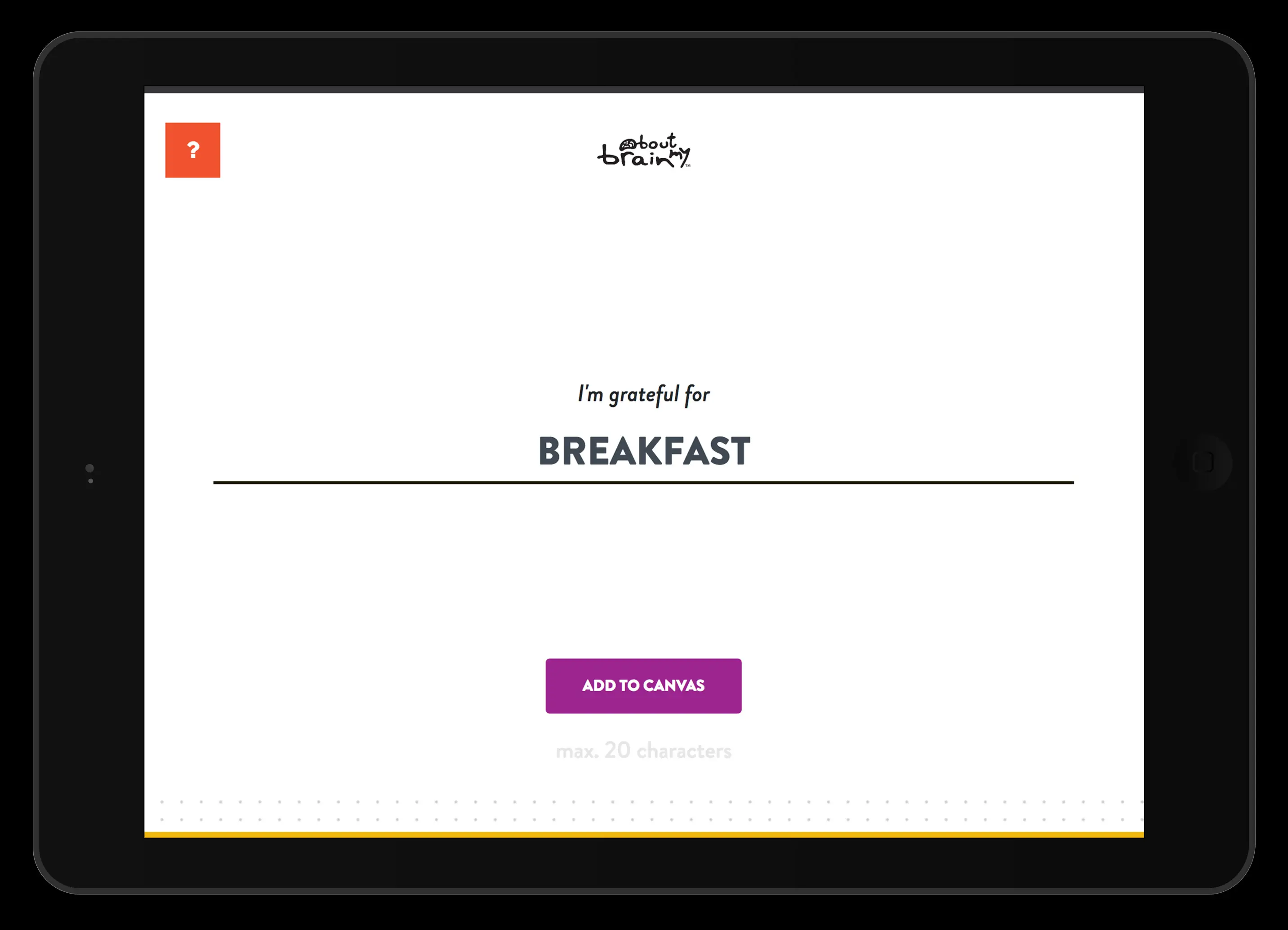 After reading resource materials given by the client, there was a quote that stands out to me and I decided to build my interactive art exhibit based on this idea. The quote appeared right after they successfully fill in what they were grateful for: