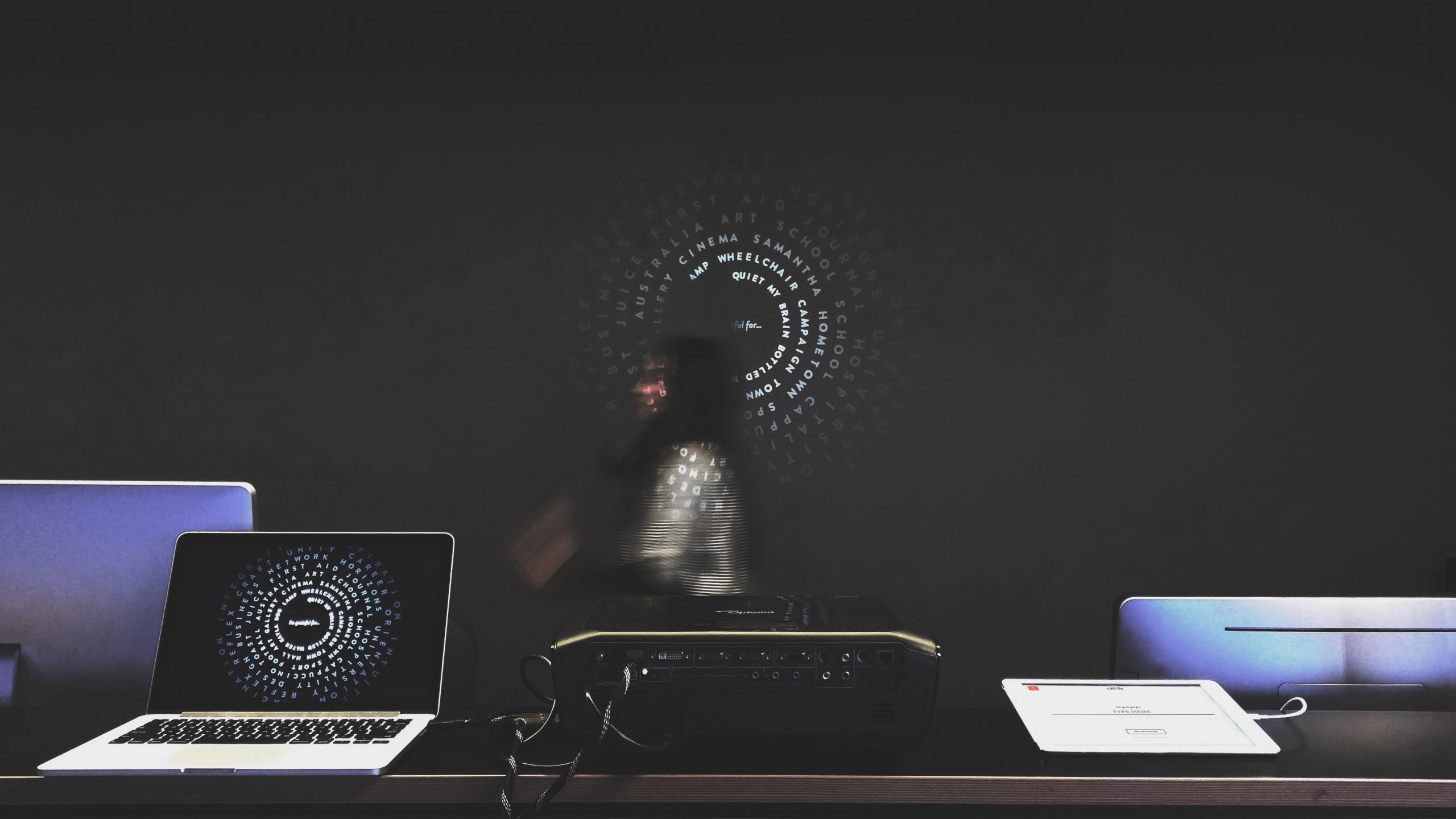 User input is collected and displayed on a wall using a short-throw projector. As part of an art exhibit, the goal is to display as if it's a "hung" piece of art. This visual presentation came up as a collective of words arranged in a spiral form and at the center of it was 'I am grateful for' statement.